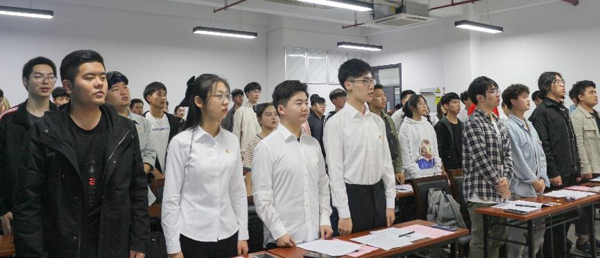 仪式在雄壮激昂的国歌声中拉开序幕。胡莹莹老师详细讲解了本期团校的教学计划与课程安排。第二期团校优秀学员代表宋强同学结合参加团校培训的生动经历分享了感悟与收获,2020级新生团支书凌依同学代表第三期青年团校全体学员进行表态发言,表示要珍惜机会、勤学善思、知行合一、投身实践。