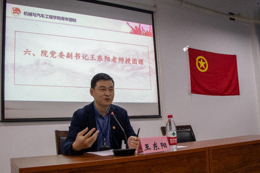 仪式上,学院党委副书记王东阳老师向进入本期团校学习的同学们表示祝贺,并为同学们讲授了本期团校的第一课。以“学习四史践初心,奋进百年勇担当”为主题,王书记从“什么是四史”、“为什么学习四史”、“怎样学习四史”三个角度出发,引导同学们深刻认识红色政权来之不易、新中国来之不易、中国特色社会主义来之不易,深刻认识中国特色社会主义制度和国家治理体系的强大生命力和显著优势。