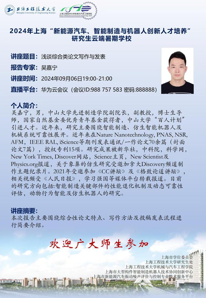 研究生云端暑期学校讲座预告——《浅谈综合类论文写作与发表》