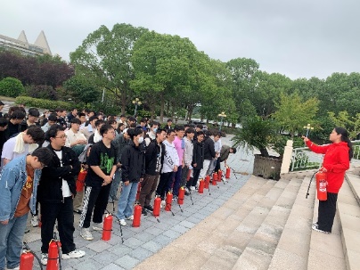 逃生演练结束后,所有同学前往学校体育馆广场进行灭火器实操培训。保卫处季程程老师讲授并演示了干粉灭火器的使用方法和操作注意事项,并通过现场模拟起火点进行灭火示范,学生们纷纷主动上场亲身体验操作,使用干粉灭火器进行灭火,每位学生均通过实际操作灭火器掌握了灭火的技巧和方法。