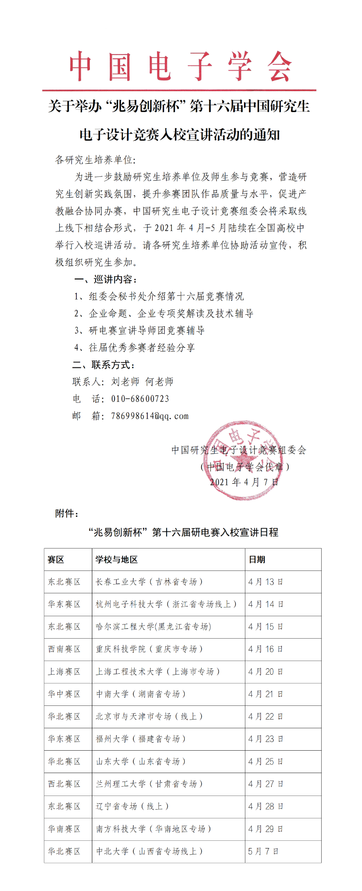 关于举办“兆易创新杯”第十六届中国研究生电子设计竞赛入校宣讲活动的通知