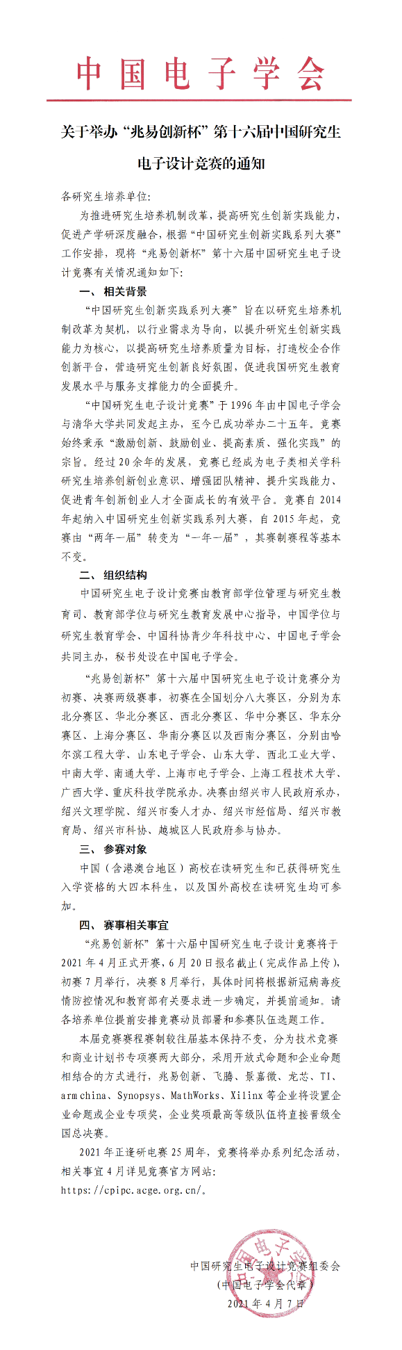 关于举办“兆易创新杯”第十六届中国研究生电子设计竞赛的通知