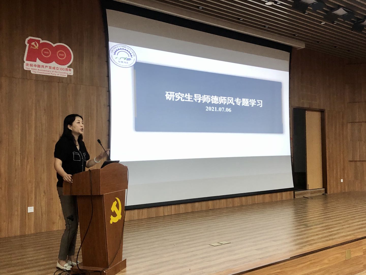 虞蓉书记给全体导师做了研究生导师德师风专题学习,帮助研究生导师树立“四个引路人”“四有好老师”等新时代教师职业观。同时,虞书记鼓励导师从教学工作者转变为教育工作者,不断提高业务能力,培养更多全面发展的优秀研究生人才。
