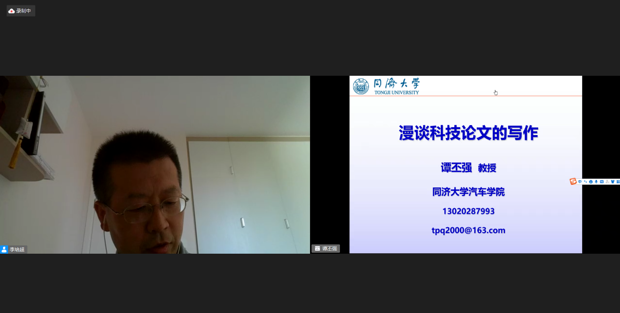 2021年8月31日14:00-16:00,通过华为云会议视频平台,同济大学汽车学院学术委员会主任谭丕强教授为暑期学校做题为《漫谈科技论文的写作》的线上专题讲座。讲座由新葡的京集团3512vip李培超老师主持。