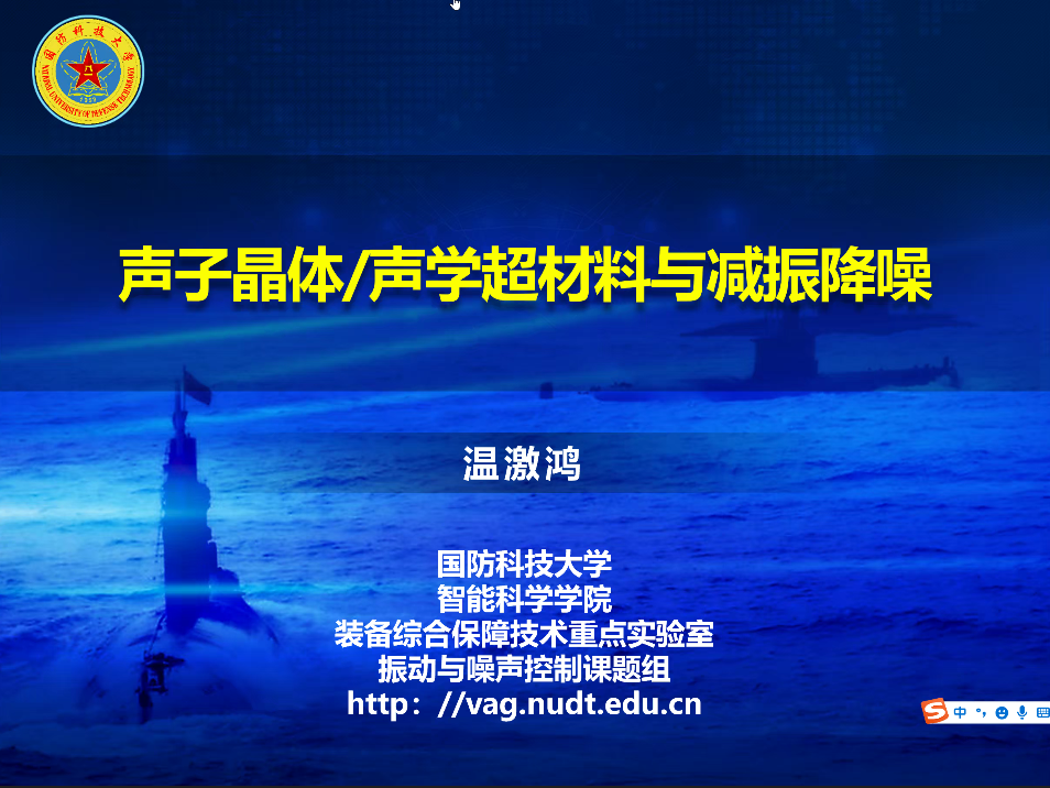 温激鸿老师在本次讲座中主要围绕声子晶体/声学超材料的基本概念、发展历史以及其内涵特征进行了详细介绍。首先温老师介绍了自己优秀的科研团队,并告诫同学们要想做好科研工作,不是一个人就可以简单成就,而是整个团队的共同合作努力。然后温老师以装备减振降噪为背景,重点介绍了声子晶体/声学超材料在结构减振降噪、新型吸声材料、舱室噪声控制等方面的应用探索与实践。