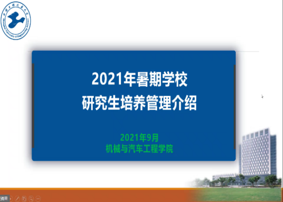 2021年9月2日9:00-10:00,通过华为云会议视频平台,向暑期学校学员们展示了新葡京官网的实验室的基本情况,包括电池测控及热管理实验室、汽车电控实验室、智能机制机器人实验室、先进制造与检测技术实验室等。通过录制和讲解各个实验室及设备的使用情况,使学员们更清晰更直观的了解新葡京官网实验室的基本情况,为学员中即将进入新葡京官网的研究生新生留下了深刻的印象。