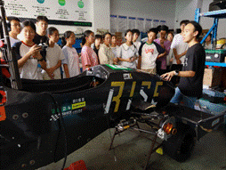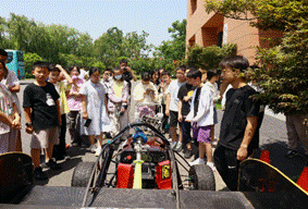 浙江省舟山市嵊泗县教育局组织的中学生科创夏令营成员访问大学生汽车科创基地,志愿者以科创成果为核心展开科普,解读赛车知识。面对孩子们的好奇追问,志愿者们分享调试趣事。模拟驾驶区的体验,让孩子们在操控虚拟赛车中感受科技乐趣。