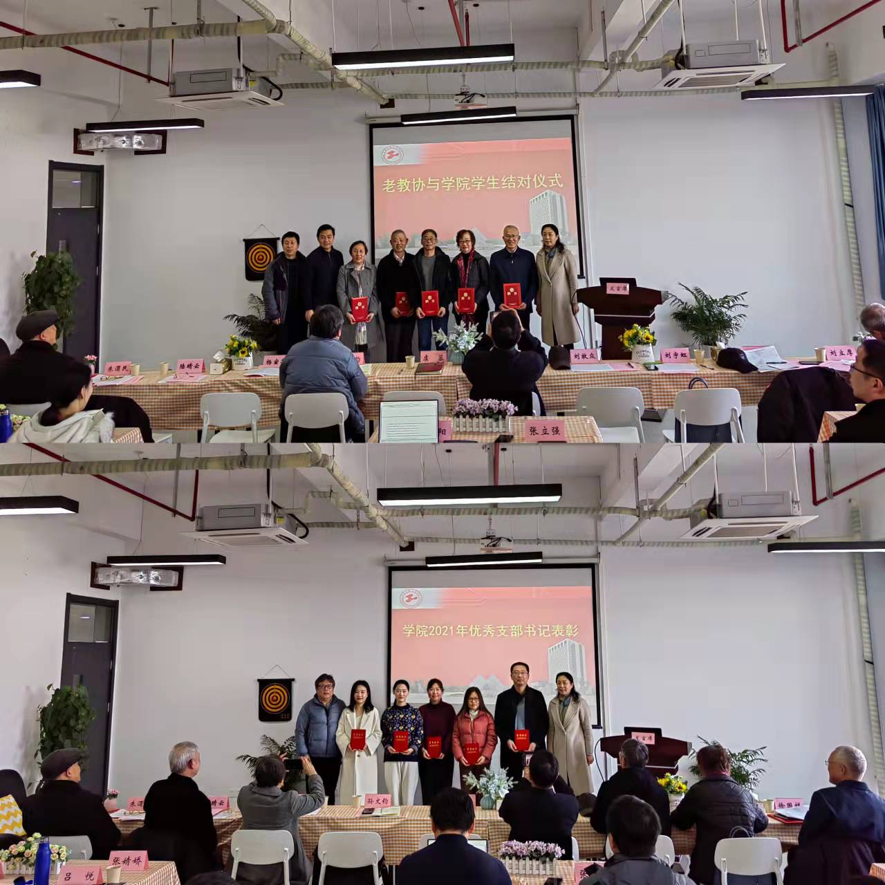 会上,举行了老教协与学院学生结对仪式。学院班子领导为老教协成员颁发了校内学业导师聘书。离退休党工委书记孙文钧为2021年度学院考核优秀的支部书记颁发了荣誉证书,并向获评优秀的支部书记表示祝贺。