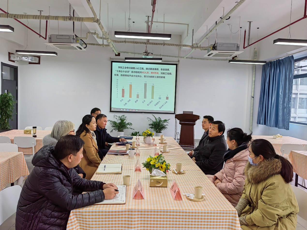 史健勇副书记代表学校向教职工表达诚挚的关心和问候,并详细了解他们工作生活状况,勉励他们要树立信心,有困难和诉求积极向工会反映,寻求组织的帮助。他表示,工会要立足职责使命,充分发挥好学校学院与教职工之间的桥梁纽带作用,能继续做好关爱教职工工作,针对教职工需求,不断强化服务理念,切实解决好教职工急难愁盼的问题,做教职工信赖的“娘家人”。他指出,学院党委也要深入基层,聆听学院教职工的心声,坚持民主管理,强化服务能级,为转型发展做好凝心聚力保障。同时要继续推进教工小家建设,充分发挥阵地作用和场域功能,让教职工之家充满温暖,将工会的桥梁纽带作用落到实处。