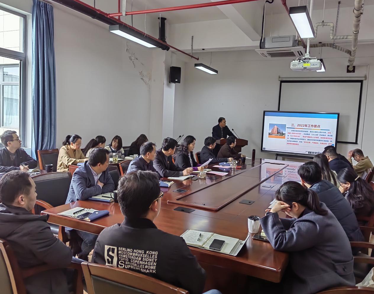 会上,院长崔国华围绕2021年中心及特色工作、常规工作及突破两大方面做了2021年学院工作总结。崔院长指出,2021年学院围绕学校党政工作要点,深化党的全面领导,聚焦学院转型发展,重点实施“党建思政引领、学科聚焦建设、服务产业发展”三大工程,有序推进党史学习教育、疫情防控、教学研究型学院建设、博士点申报、产教融合人才培养等中心工作,取得多项新突破。崔院长进一步指出,2022年学院将重点落实“九大专项行动”,推进产教融合人才培养、培育申博学科优势、增强科研平台支撑能力、强化科学研究和服务社会能级、优化内部治理体系,夯实“学科引领、产教融合、科教协同”的学院转型发展新路径。崔院长强调,全体中层干部要统一思想、勇于担当,凝心聚力、奋勇向前,在建设教学研究型学院的事业中不断取得新的成绩、铸就新的辉煌。