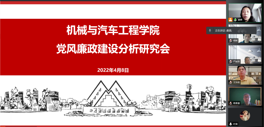 为彻落实中央、市纪委全会精神,按照市委、学校党委管党治党部署和要求,4月8日下午,新葡的京集团3512vip党委通过线上会议召开2022年党风廉政建设分析研究会,学院全体班子成员参加会议,会议由学院党委书记虞蓉主持。