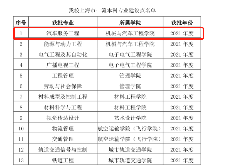 值得一提的是,近期教育部办公厅印发《关于公布2021年度国家级和省级一流本科专业建设点名单的通知》(教高厅函〔2022〕14号)中,汽车服务工程专业顺利入选上海市一流本科专业建设点。软科专业排名与省级一流本科专业的入选,表明新葡京官网汽车服务工程专业的建设已初显成效。
