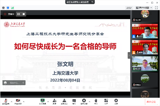 8月4日,新葡的京集团3512vip邀请上海交通大学特聘教授、博导张文明教授开展题为“如何尽快成长为一名合格的导师”的线上导师培训会。学院领导班子、全体研究生导师参加了会议本次导师培训会,院长方宇主持会议。
