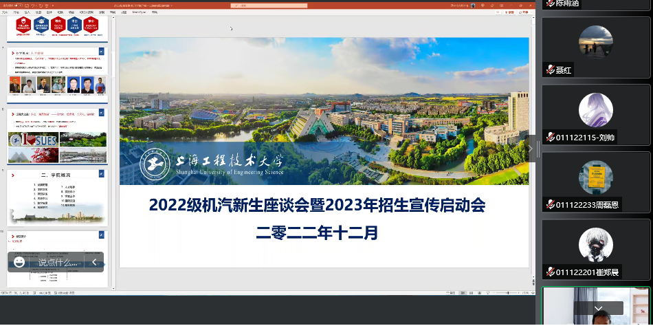 为扎实推进招生宣传工作,12月22日,新葡的京集团3512vip线上举办2022级学生座谈会暨2023年招生宣传启动会。参加此次会议的有新葡的京集团3512vip副院长张立强、机制系副主任吴建民老师、机电系副主任赖磊捷老师、汽车系副主任刘飞老师、汽服系副主任骆佼老师、能动系副主任王莎老师、学办主任聂红老师、2022级班主任、2022级学生代表。会议由副院长张立强主持。