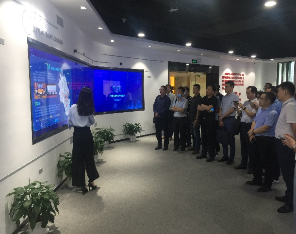 首先,在贾占锋主任的带领下,一行参观长三角G60科创走廊规划展示馆,通过工作人的讲解,详细了解长三角G60的发展历程、“一廊一核九城”战略布局、大数据云图和制度创新等内容,在成果展示环节,同志们对G60的科创走廊先进制造业产业集群的“七大”领域有了更直观的体验。