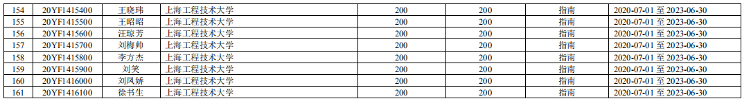 2020 年度新葡京官网上海市青年科技英才扬帆计划入选人员名单
