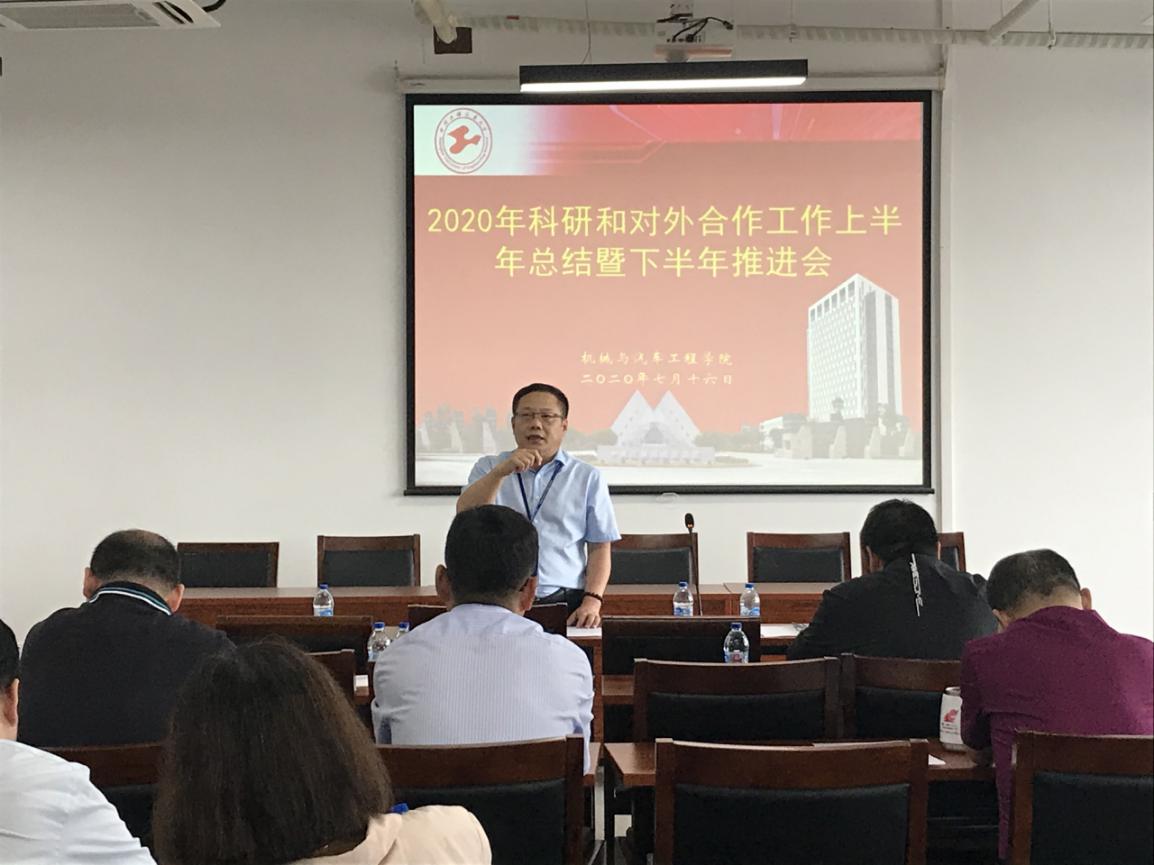 716日下午,机械与汽车工程学院在交通大楼8B605召开了2020年科研和对外合作工作上半年总结暨下半年推进会。会议由学院科研副院长严祯荣主持,张华院长、各系(室)中心主任、科研副主任及科研创新培育团队负责人等参加了会议。严祯荣副院长对学院上半年的科研和对外合作工作取得的成绩进行了总结汇报,并全面部署了下半年的工作任务,进一步明确了各系(室)中心的科研考核指标,最后对校科研工作例会的精神进行了传达。会上,各系主任和团队负责人代表就科研考核指标分配方案进行了深入交流和探讨。张华院长最后对各系(室)中心今后的科研管理工作提出了要求和希望,希望在各系主任和团队负责人的带领下,基层学术组织能活跃起来,营造学院和谐共进的科研氛围,激励教师的科研热情,增强学院整体科研实力