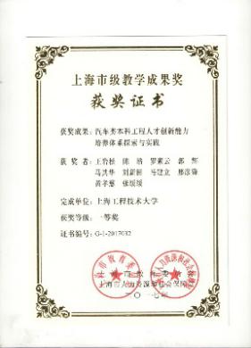系室教师曾获上海市教学成果特等奖、上海市育才奖、上海市三八红旗手等荣誉称号,获上海市一流本科课程2门、上海市重点课程3门、上海市课程思政示范课程1门。教师指导学生参加大学生方程式赛车大赛、大学生巴哈赛车大赛、智能网联汽车大赛等获奖多项。